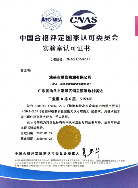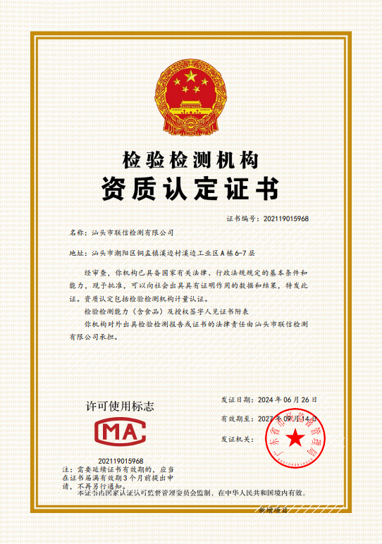 选择汕头市联信检测有限公司,您选择的是品质与信任的保证。我们将继续秉持专业、敬业、诚信、创新的企业精神,为客户提供更加卓越、全面、专业的检测服务,共同创造更加美好的未来。
